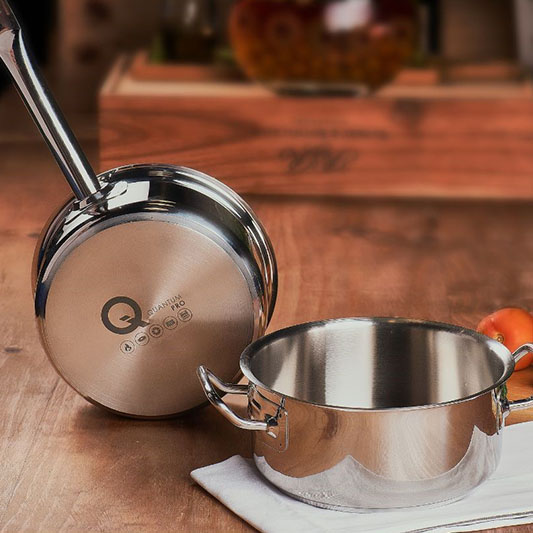 Crafted from premium 304 stainless steel, Quantum Pro pots and pans offer exceptional durability. Their performance-driven design withstands the harshest kitchen conditions. Featuring a special aluminum core, these pots and pans ensure rapid, even heat transfer for perfectly cooked food. Sturdy, hollow handles reduce heat transfer, keeping handles cool and secure. Versatile in use, they are compatible with gas, electric, and induction cooktops, making them a great choice for kitchens.